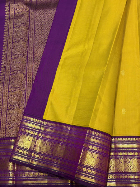Classic Mustard & Vadamalli 2gm Zari Elegance Kanchipuram Handloom Silk Saree SS26918