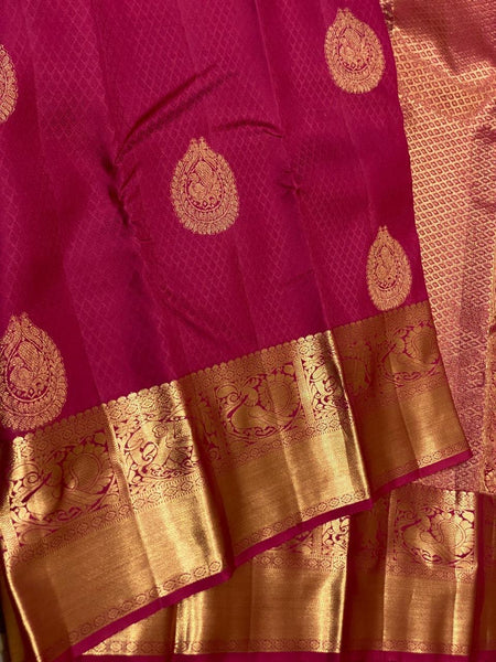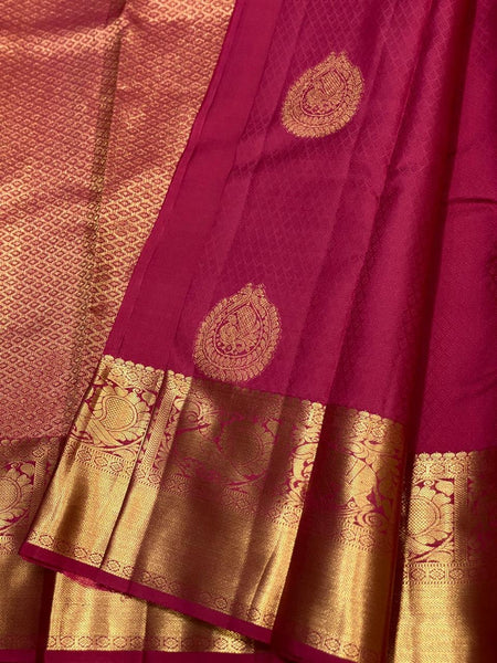 Classic Cerise Pink 2gm Zari Brocade Bridal Elegance Kanchipuram Handloom Silk Saree SS26977