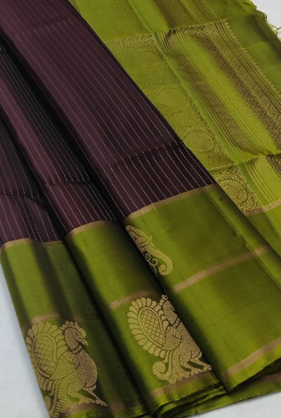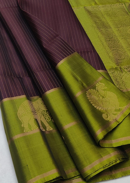 Classic Chocolate Brown & Olive Green Double Warp Elegance Handloom Soft Silk Saree SS26745