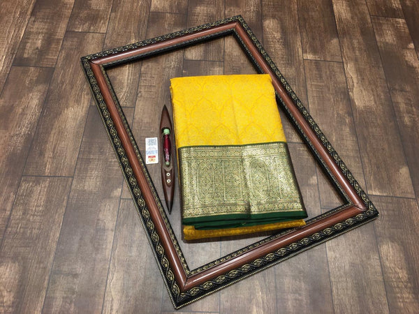 Classic Sunny Yellow & Bottle Green Bridal Elegance Kanchipuram Handloom Silk Saree SS26696