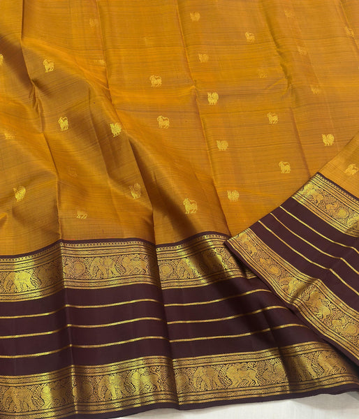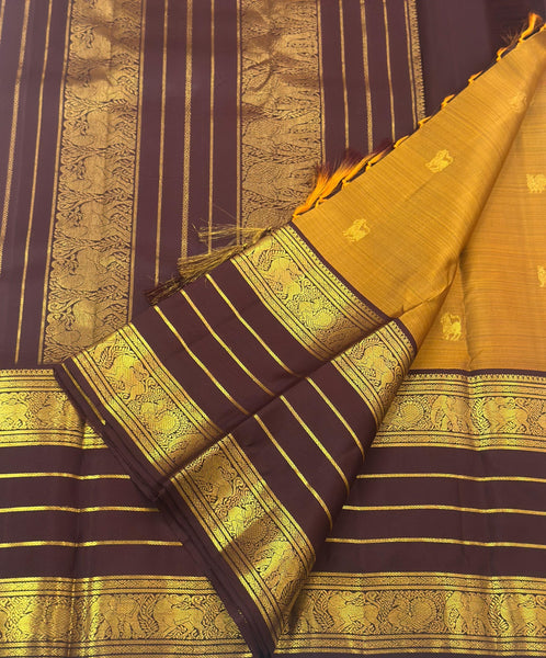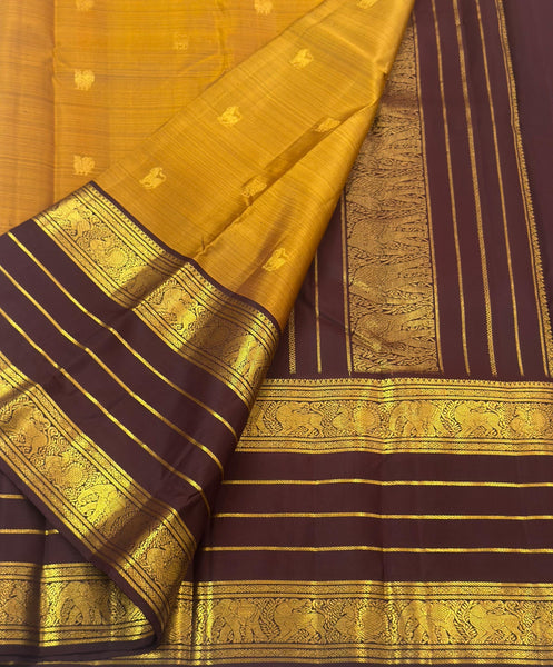 Classic Mustard & Dark Chocolate 2gm Zari Korvai Kanchipuram Handloom Silk Saree SS26902