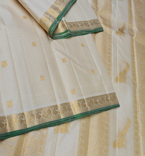 Classic Butter Cream 2gm Zari Vintage Kanchipuram Handloom Silk Saree SS26599