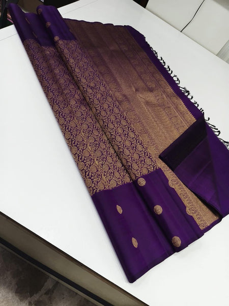 Classic Eminence Violet 2gm Zari Elegance Kanchipuram Handloom Silk Saree SS26963