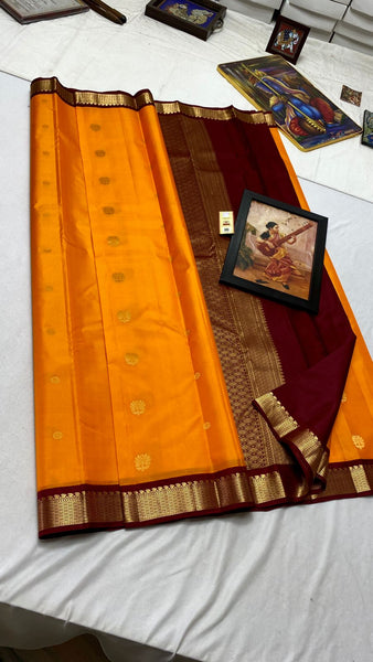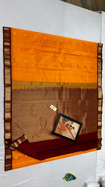 Classic Orange & Garnet Red Korvai Kanchipuram Handloom Silk Saree SS26573