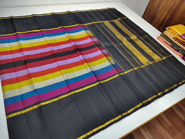 Classic Rainbow Series 2gm Gold Zari Elegance Kanchipuram Handloom Silk Saree SS27074