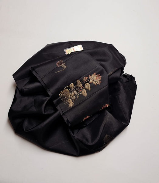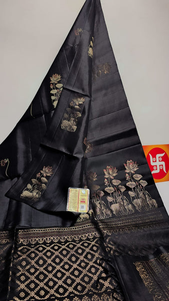 Classic Slate Black Double Warp Elegance Handloom Soft Silk Saree SS26848