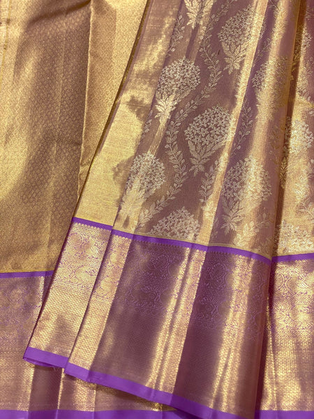 Pastel Lavender 2gm Zari Brocade Tissue Bridal Elegance Kanchipuram Handloom Silk Saree SS26664